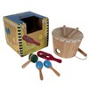 Sounds Like Fun! Shake Rattle and Drum | This handcrafted wood set includes 7 pieces: A bucket drum with a natural skin head, a pair of drum sticks, a single jingle stick, a handled castanet and a pair of mini maracas. Fun for the whole family or class! Includes a parent/teacher-friendly activity guide for ideas on using the items to encourage child development.