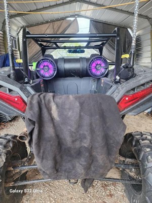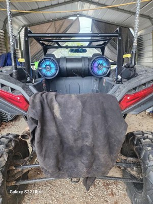 [This review was collected as part of a promotion.] Let me tell you this product surprised me. I did not expect it to be this big but I am obsessed with it. I could not wait to get it set up on my side-by-side (RZR). The sound quality is amazing. Going down the road at 50mph you can hear the music so well. The lights are an added plus, it looks so good along with all my other lights. If you're in the market for a Bluetooth speaker for an ATV or anything to that nature, give this product a try, you will not be disappointed. It's also waterproof so that's a huge plus.