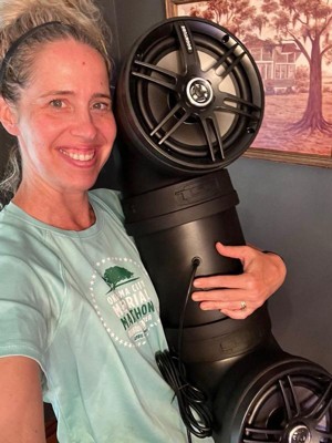 [This review was collected as part of a promotion.] Sound quality on this speaker is crisp and clear. This looks heavy, but it’s surprisingly lighter than you would think. It was easy to connect and set up. Seems durable so I cannot wait to put this on our four wheelers at the lake house this summer