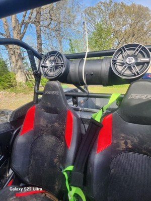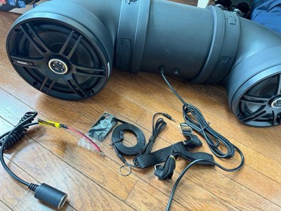 [This review was collected as part of a promotion.] Ok so I have to be honest here - when I claimed this item I thought it was going to be a travel sized Bluetooth speaker. It arrived in a HUMONGOUS box and I quickly realized I didn’t read the description and it was, in fact, meant to mount in an atv or similar vehicle. The speaker itself is super durable - it feels like it could definitely survive and do its job on some rugged vehicle. It comes with all the pieces you would need to mount it securely, and is very straightforward. It is a POWERFUL speaker and would definitely be useful on a busy/loud/extreme ride. It lights up to look really cool and performs impeccably. There is also a remote for easy control without having to touch your phone. It connects via Bluetooth or a direct wire. Really impressed with this tbh.