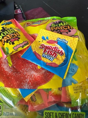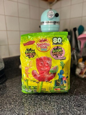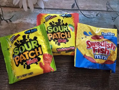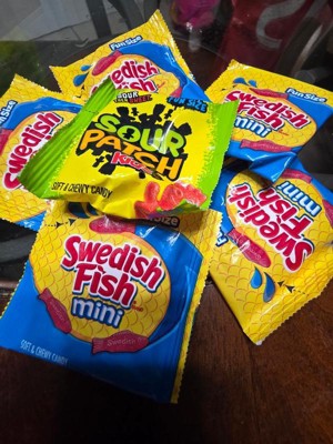 - SOUR PATCH KIDS and SWEDISH FISH Mini gummy candy snack packs that make great party favors and holiday candy, prizes for family game night, and home movie theater candy