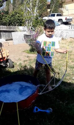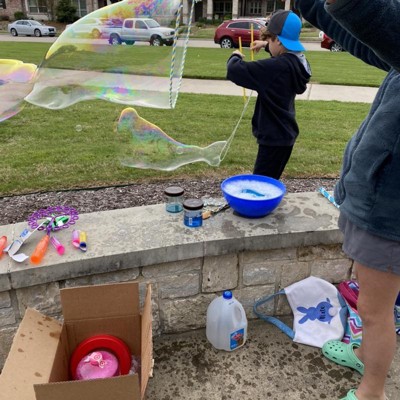 [This review was collected as part of a promotion.] We loved making these bubbles in the front yard. It was easy to mix, just pour the packet in a bucket of water and it's plenty for the whole family to share! We had tons of fun with these giant bubbles.