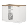 - A TON OF STORAGE: Easily add storage to your space with this kitchen island. It has an integrated wine storage, 2 cabinets with fixed shelves and 2 open compartments, and can be installed either sideways, against a wall, or in the center of the room.
