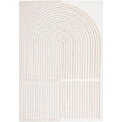 Made with exceptional craftsmanship in India, this rug features a harmonious ivory and beige color palette that will complement a wide range of decor styles. The contemporary design showcases a captivating pattern with gentle, sweeping curves and lined details, lending a modern and stylish visual appeal to the rug's surface.
