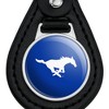 - QUALITY MATERIAL: Our durable round keychain is crafted from leather with a glossy resin-topped emblem featured design shown on one side. Approximately 1.5" (3.8cm) x 2.5" (6.4cm) in overall size, emblem is 1" (2.5cm)..