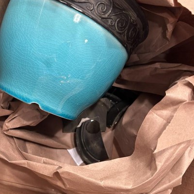 I love the design & colors of this planter. it's sturdy but not heavy. It will look lovely in my bay window. The packing was excellent and the planter arrived without a scratch or chip!!