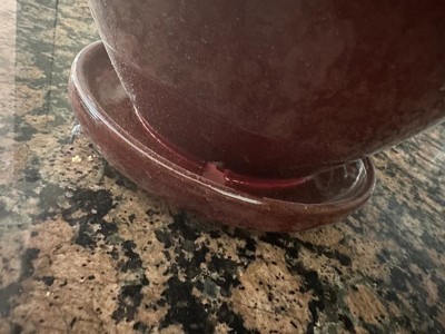 [This review was collected as part of a promotion.] The Southern Patio Wisteria Ceramic Planter Pot with Saucer is a stunning addition to any home or garden. Handcrafted from thick ceramic, this pot is both durable and lightweight, making it easy to move around without worrying about accidental tipping. The rolled lip and oxblood red glazed finish give it a classic, elegant look that complements any décor. In my home, I used this planter pot to grow a variety of kitchen herbs and decorative flowers. The pot's generous size, holding up to 20 quarts of potting soil, was perfect for my needs. I planted basil, mint, and thyme in the pot, all of which thrived thanks to the pot's excellent drainage provided by the accompanying saucer. The saucer's rubber bottom also protected my kitchen countertop from scratches and spills. Overall, the Southern Patio Wisteria Ceramic Planter Pot with Saucer is a versatile and beautiful addition to any plant lover's collection. Whether for indoor or outdoor use, it provides a stylish and practical home for your favorite plants.