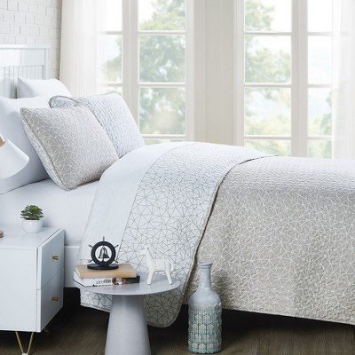 Southshore Fine Living Oversized Coastal Stripe 3-Piece Quilt Set Taupe King / California King