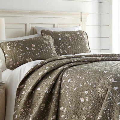 Southshore Fine Living Oversized Embroidered Classic 2-Piece Quilt Set Dark Taupe Twin / Twin XL