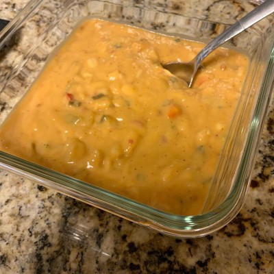 Tastes strange. Not in a good way. The picture on the jar is just plain misleading - some corn and a couple tiny chunks of potato. It's like the consistency of thin nacho cheese, but tastes weirdly super sweet. It's bad. Really bad.