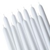 - Pack of 8 unscented white taper candles with a 0.9" diameter and 10"