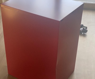 Love the color. Delivered with a dent in it and no screws for the handle. Too difficult to pack back up & send back, with shipping label from Target.