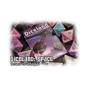 Diceland: Space is a 50-die expansion for Diceland, which comes in two different 25-die boxes. The set introduces new abilities like Cloak, Remove, Dodge, and more, and gives players their first chance to construct customized Diceland armies. Each box contains two major armies, one smaller one, and a strange and wonderful 25th die.Space: Garthans vs. Muktians includes an 11-die Garthan army, featuring both the Light and Super Carriers as well as a vast array of small Fighters; the 8-die Muktian army featuring a mix of unusual ship designs; and the 5-die Tan Ru army, featuring a powerhouse 15-point Decimator and a wing of three mindless Drones. Also in the Garthans vs. Muktians box, you’ll find the 50-point Yellow Kawangi die, a bizarre and powerful die that’s sure to be illegal in tournaments any day now.Space: Terrans vs. Urluquai includes an 11-die Terran army, featuring a fast-moving wing of Scouts and a powerful 15-point Destroyer; the 8-die Urluquai army including both a Corvette and a Fighter with the Cloaking ability; and the 5-die Zorg army, with a fat carrier and a unique Tender which can teleport enemies off the board. Also in the Terrans vs. Urluquai box, you’ll find the friendly Klackar Frigate, an impressive 16-point frigate that’s a perfect addition to any army that can afford him.Diceland: Space is a really great set and we hope everyone gets a chance to play it. The dice are completely compatible with the original Deep White Sea (though it may seem strange putting Spaceships up against Elves), and with all other Diceland expansions to come.