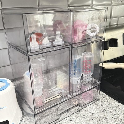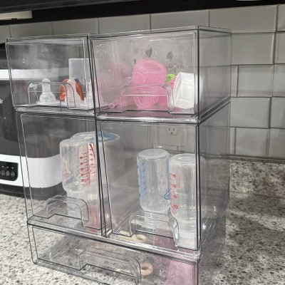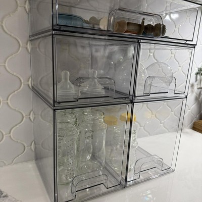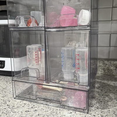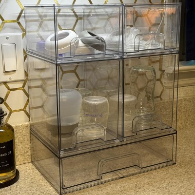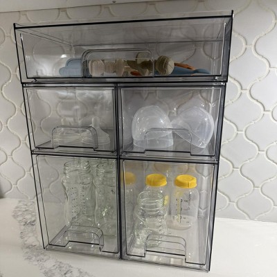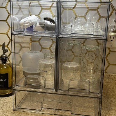 SpaceAid Baby Bottle Storage Organizer, Stackable Acrylic Drawer Unit with Small, Medium & Large Bin for Countertop, Cabinet, Vanity