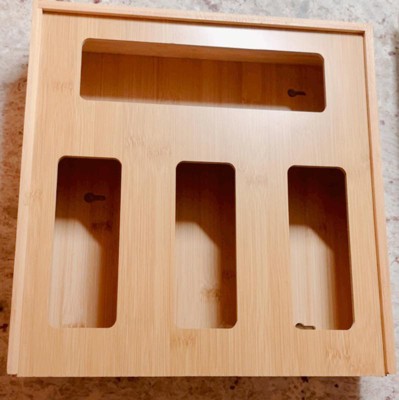 - Size: 12.5"W x 12"D x 3"H;Neatly organize your drawer with a bamboo food storage bag holder