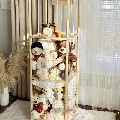SpaceAid Stuffed Animal Storage Organizer – Wood Toy Zoo Cage, Large Plush Toy Holder for Playroom, 15.8" Wide, Natural