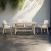 - SIZED FOR SMALL SPACES, BIG ON STYLE: Compact enough for tight spaces, yet designed to seat four comfortably—this 4-chair setup is perfect for laid-back dinners or catching up over coffee in patios or decks. Dining table (35.43” L x 60.63” W x 29.92” H ) Dining chairs (26.38” L x 22.05” W x 35.63” H)