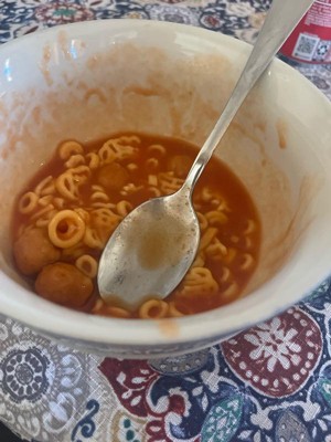When my child will eat nothing else, I can always get her to eat speghettios. She loves the meatballs! And I love the noodles! I usually hear it for about a minute in the microwave for a quick hunger fix! Yummy!