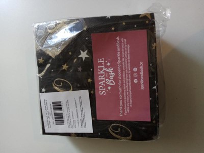 Sparkle and Bash 100 Pack Bulk Happy 80th Birthday Napkins for Party Decorations, 2-Ply, Black and Gold, 6.5 x 6.5 In