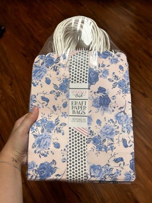[This review was collected as part of a promotion.] The Medium Floral Paper Gift Bags by Sparkle and Bash are absolutely darling! Not only are they so pretty to look at but they are made with sturdy paper and handles! The size is a generous 10x8x4 inches making it a perfect bag choice for any special occasion! The blue floral print against the blush pink background and scalloped top is lovely. The floral print is not pixelated nor cheap looking. In fact, it looks and feels high quality. The pack of 24 is also a generous bundle. These will be perfect for birthdays, weddings, house warming gifts and any and all special events that arise! A must have in your gift closet!