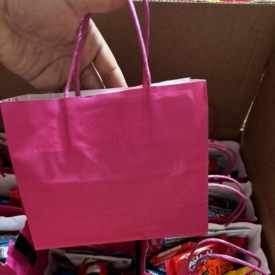 Sparkle and Bash 50 Pack Mini Pink Gift Bags with Handles, Bulk Kraft Party Favor Bags, 6 x 5 x 2.5 in