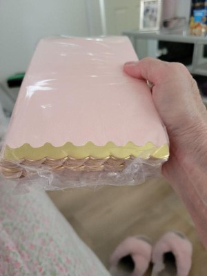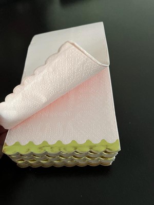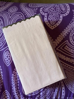 [This review was collected as part of a promotion.] These light pink paper napkins are beautiful, durable and soft. The gold scalloped edges add a touch of elegance that makes them perfect for parties or when you have guests over. They’re also very absorbent. I will use them for a gathering this weekend where I plan on using a gold tray for hors d’oeuvres. They’re very pretty and a great price for the excellent quality.