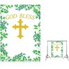 Elevate your baptism decorations with our religious photo backdrop that features a cross with greenery that reads "God Bless." The reusable vinyl photo backdrop can easily be set up in the dining room, living room, entryway, or backyard to create a fun and festive theme throughout your event. Use this first communion decoration to take photos with your family and friends to celebrate your big day!