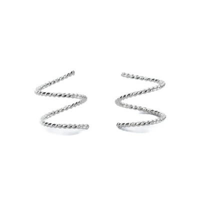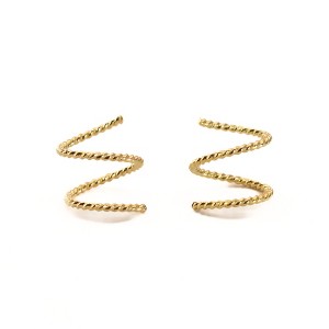 Minimal and sweet, these are THE everyday pair of earrings. The tiny spirals thread through a single piercing to make it look like there are two. Open them up to make it look like the piercings are widely spaced, or squish them down for a wider double hoop look. These are an easy set and forget style, perfect for the ear lobe or cartilage piercings. The ends are rounded and smoothed for your comfort, and are designed so that they come flush or nearly flush with your ear to reduce any potential snags or discomfort. Modern, elegant, feminine and bold, these earrings are always in style and will always match. Made from eco-friendly sterling silver, gold fill, or solid 14K, these earrings are sustainable and lovely.