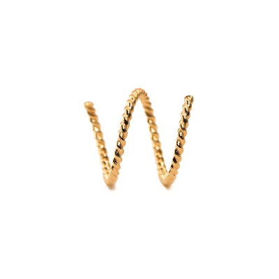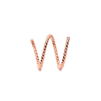 Minimal and sweet, these are such a fun way to switch up your piercings. The tiny spirals thread through a single piercing to make it look like there are two. Open them up to make it look like the piercings are widely spaced, or squish them down for a wider double hoop look. These are an easy, set and forget style, perfect for your nose, ear lobe or cartilage piercings. The ring is designed so that the "fake" piercing is toward the back/closer to your cheek, and the true piercing is toward the tip of the nose. If you want those inverted (with the non-piercing loop toward the front/tip of your nose), just check out with the opposite side. For ears, the non-piercing loop is toward the outside of the ear, with the true piercing toward your cheek. Worn those ways, the sides will match - right side nose ring can be worn interchangeably on the right ear.