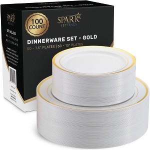 - The SparkSettings high-quality white disposable dinner plates come in 3 flattering colors to match the aesthetics of any unique event.