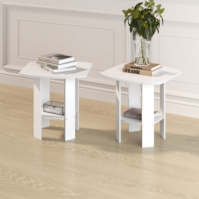 Spassway 20"H*18"W Sets of 2 White Square Glass End Tables with Metal Frame 2-Tier Side Tables Sofa Coffee Table with Storage Shelve for Living Room