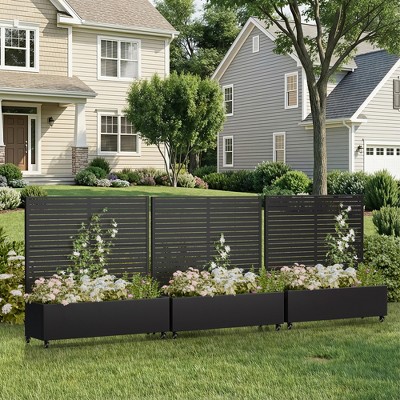 Spassway 3-Piece Metal Planter Box with Leaves Style Trellis Raised Garden Bed with Wheels Pot Planter for Climbing Plant Decorative Privacy Screen