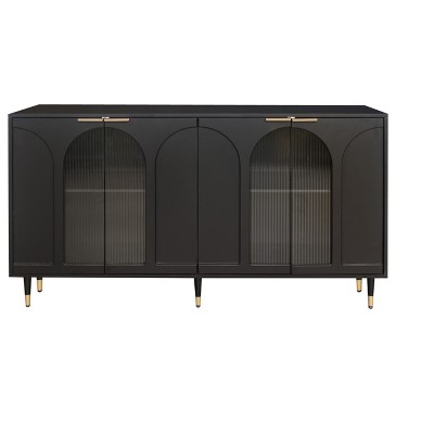 SpassWay 31"H Modern Wooden Decorative Combination Storage Cabinet With Four Doors Versatile for Entryway Living Room Hallway Black/Natural Wood