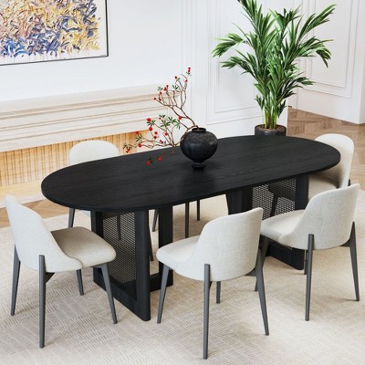 Spassway 7-Piece Dining Sets Modern Oval Dining Table Kitchen Chairs with Padded Seats Backrests Dining Room Table Chair Set for Home Apartment