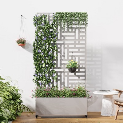 Spassway Indoor Outdoor Geometric Metal Planter Pot Planter Box Patio Garden Bed Gray