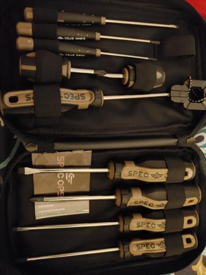 [This review was collected as part of a promotion.] Spec Ops Screwdriver Set with Case, 10-Piece With more torque and longer tip life, these Spec Ops screwdrivers deliver ultimate control and perfect tip fit. The Spec Ops 10-piece Screwdriver Set includes five slotted (1/4-in x 1-1/2-in, 1/8-in x 3-in, 3/16-in x 5-in, 1/4-in x 4-in, 5/16-in x 6-in) and five Phillips (PH0 x 3-in, PH1 x 4-in, PH1 x 5-in, PH2 x 4-in, PH2 x 1-1/2-in) screwdrivers.
