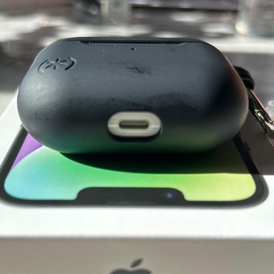 There's no way to access the pairing button on the back of the AirPods Pro case without taking the Speck case off. And it doesn't come off easy. I usually need to use tools and press so hard it feels like I'll break the AirPods case. So if one of your devices disconnects from your AirPods for whatever reason, you're stuck until you can get the case off.