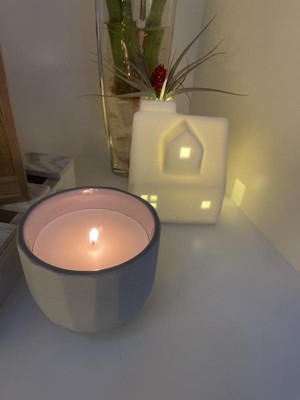 This ceramic candle holder is well-made and feels like sandstone to the touch. Its light color makes it versatile in any room. It’s definitely on the smaller side so will work better on a small shelf or as part of a table centerpiece. The candle has a lovely light scent. The candle is not strongly attached to the holder so looking forward to being able to trade out candles and continue using the holder!