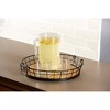 Make a trendy statement in your living space with the Spectrum Madison Serving Tray. The sturdy design can display food, drinks, plants, centerpieces, and more. Place it on a dining table, ottoman, kitchen countertop, or use the carrying handles for easy transport from indoor to outdoor dining. The stable wood base and solid steel construction add a trendy focal point to your living space, making this serving tray perfect for those looking to organize in style.