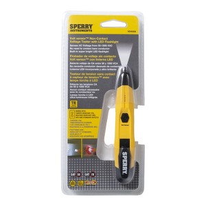 A non-contact voltage tester serves as a key component in any electrical toolkit, allowing the user to verify the presence of AC voltage prior to working on an electrical installation or during troubleshooting without requiring physical contact with live electrical conductors. Engineered to specifications required by professional electricians the Sperry Instruments VD6508 Non-Contact Voltage Detector features both audible (beeping) and visual (360 degree flashing red light) indicators to alert the user of the presence of AC voltage from 50V to 1000V. It also includes a built-in flashlight. The fully insulated probe tip eliminates the risk of contacting live electrical wires while the patented battery check feature designed into the unit ensures tester and batteries are operating properly, virtually eliminating false negative readings. This unit features 250lb crush-rated impact resistant ABS housing to withstand tough applications while the design ensures a positive user experience over long hours of repeated use. Applications include quickly locating hot terminals in receptacles, pinpointing breaks in wires and detecting the absence/presence of voltage at outlets, circuit breaker panels, light fixtures, switches and motors. The unit includes a pocket-clip for secure portability. Tester is cETLus Listed, CE Certified, CAT III 1000V/IV 600V rated. Operates from a single AAA battery (included). Frequency: 50-60Hz.