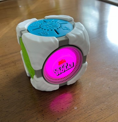 Our family had a good time playing this. It’s fun and can get very competitive. It has 6 built in games: Tap and shake – a memory and repeat game, Freeze Dance – dance and move until the music stops, Cube Boom – a hot potato like game, Word Play – where you think of words in a category or words that rhyme, Grab it – where you do different moves and grab the cube when it tells you to grab it, and Scavenger Hunt – where you flip up the different color sides and find shapes on the sides. The shapes can get hard to find but they are mostly things like a banana that you can find on the yellow side, etc. Play each game few times and you’ll get the hang of it. Rules are easy to learn and they have a QR code to go to an instruction video link that is great for people like me that take a while to pick things up.