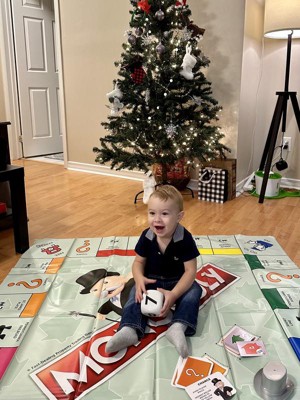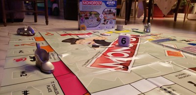 [This review was collected as part of a promotion.] Our family loves board games & Monopoly is one of our favourites! This giant version is simply amazing. We played indoors in our living room but it would be just as fun outdoors on a nice summer day. This game is slightly different than the original board game, with simpler rules for up to four players and can be completed within 30 minutes. This made it more enticing to the younger ones in our family. The large tokens were fun to move around on the board. We all had a blast taking turns and playing! I would definitely recommend this to anyone who loves a great board game. Product received for free from Butterly.com in exchange for an honest review.