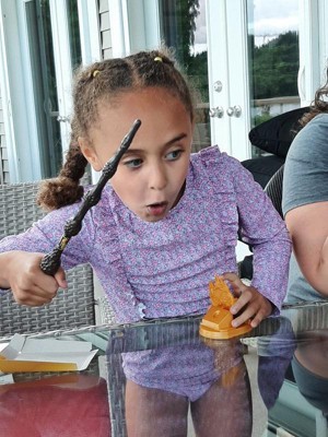 [This review was collected as part of a promotion.] We received Luna Lovegood's wand to try, and while my kids were really hoping for Harry's wand they were happy with Luna's too! The packages come unmarked, so you don't actually know which wand is in your box until you open it. While that increases the excitement of the mystery it can also cause disappointment with young kids, as there are 9 different wands to collect. It also makes it very difficult to collect all 9 wands, if you really wanted to collect them. The wand and the majority of the wand stand are made out of plastic, however the wand itself has a bit of heft which is nice when your casting spells, it adds to the correct 'flick'! While each of the 9 wands have a slightly different shape, they are all made out of brown plastic and appear fairly nondescript. The item that is truly unique with each wand is the little diecast magical creature that you set on the wand stand for decoration, and weight. To me, and to my children the diecast creature was a bit more special then the wand itself. That said the kids had lots of fun casting spells with the wand too. One thing I found odd with the packaging was the targeted age group. The box says 14+ and this toy is much too young for a 14 year old. My seven year old loved it, and I think that is a better age for this toy. An older child might want to collect the wands, but since you can't select for a wand you might be missing in your collection, it is unlikely they will purchased as a true collectable. All in all, a fun, magical toy for a child under 10. Thank you Spin Master for letting us test this for free. #gotItFree