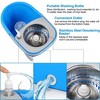- The mop and bucket with wringer can be wrings drier with press down gently,without splashing, and the soap dispenser and Rubber stoppers on the bottom spout of the bucket make it easier to use