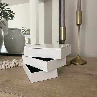 - CLEAN MODERN DESIGN: Designed by Tom Vincent for Umbra, Spindle combines the organizational features of a classic jewelry box, with a clean, modern pivoting design paired with a white, high-gloss finish