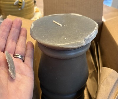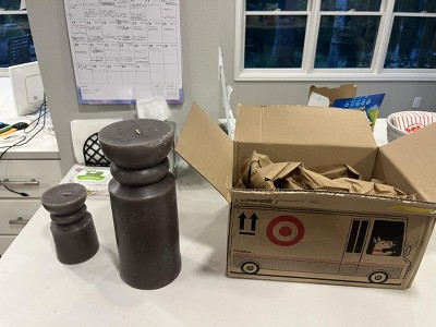 Purchased 3 different sizes!!! Excited about them as we are planning a wedding!! All 3 arrived damaged due to packaging…arrived in 1 box with no wrap so they were able to roll around in the box damaging all 3 candles!!! Extremely disappointed!!! Will be returning & hopefully will have better luck in store!!! Really need to find a solution for delivery as this is not the first time this has happened!!