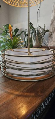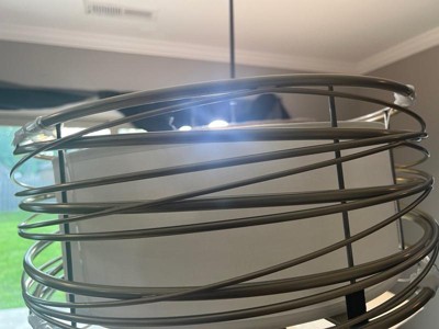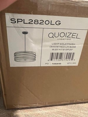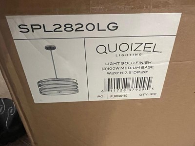 [This review was collected as part of a promotion.] This is the most gorgeous hanging pendant light by Quoizel I ever did see. It's much bigger than in the photos, which I'm gitty about. It's a statement piece that would be perfect added to almost any decor, including mine. I'm having a hard time deciding if I should have it hang in the living room or up close to the ceiling in my bedroom. It's changeable with lots of room for different ceilings heights and preferences. I love that I can dim the light as I see fit, with the right light bulbs. This traditional styled gold steel spiral that curls around the simple off-white shade is very in right now. It was love at first sight. It's so expensively done.
