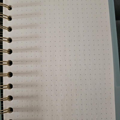 [This review was collected as part of a promotion.] This is an excellent, high quality, classy dot notebook. This notebook has some great features such as the bag in the back as shown to keep little things in as you use the notebook, stickers in the front for adding flair and standouts in the notebook and nice thick pages to write on that dont bleed through your pen ink. I prefer dot notebooks for tracking finances and personal success notes so this is perfect.