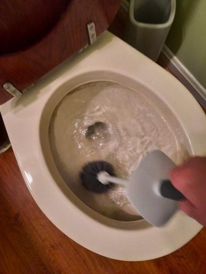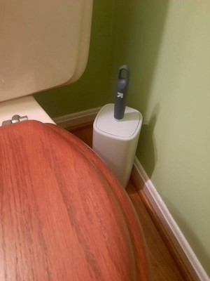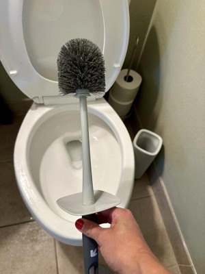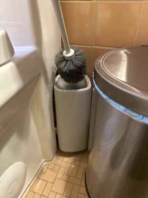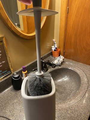 A: Hello Kelly - Thank you for your Interest! This Toilet brush features a base which is ventilated with a drip tray to minimize dampness and enhance cleanliness. You can remove the entire brush holder from its base, or lift the brush and holster out of the base, to access the drip tray at the bottom, and then tip it over the sink or toilet to empty any accumulated water. Hope this helps! - Eram