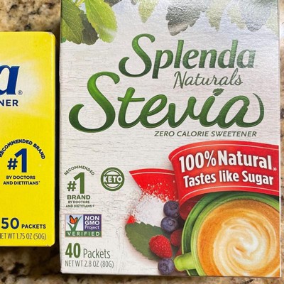 Splenda Stevia Sweetener Packets contain nothing artificial and are completely non-GMO. It tastes like sugar with zero calories. It is the perfect zero-calorie sugar alternative for sweetening your coffee, tea, other beverages, oatmeal, fruit, and more! The Splenda brand is the number one recommended sweetener brand by doctors and dietitians, plus it’s America’s favorite sweetener brand. Enjoy the best tasting Stevia for sweetening beverages and food.